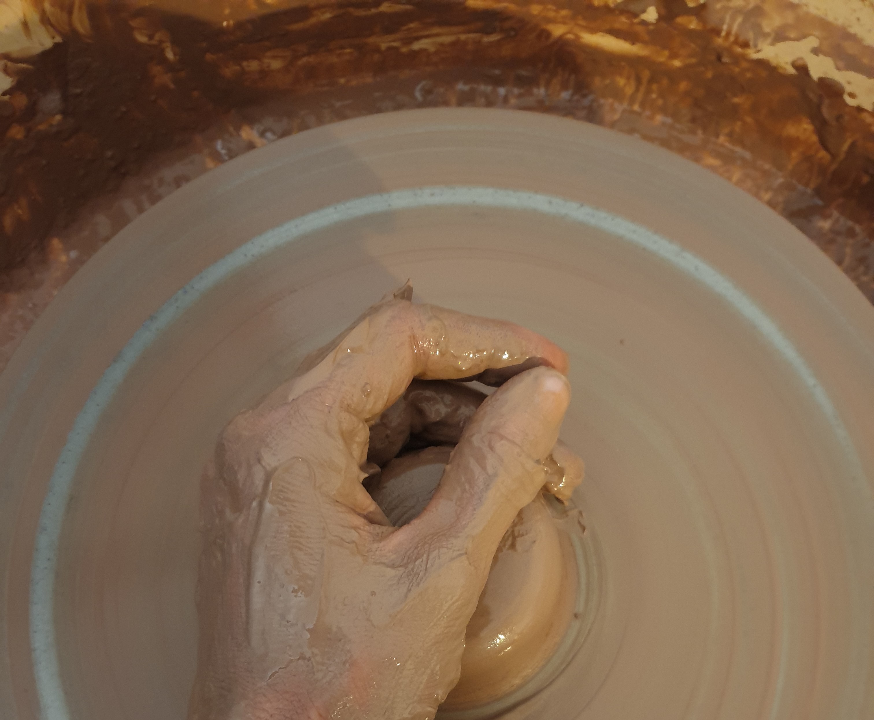 La femme tourne tout autour du tour. Claque la terre, la mélange, la malaxe, la prépare. Puis la tourne. Pour fabriquer des objets : des tasses, des bols, des saladiers… des séries, encore, encore… et de plus en plus grands.